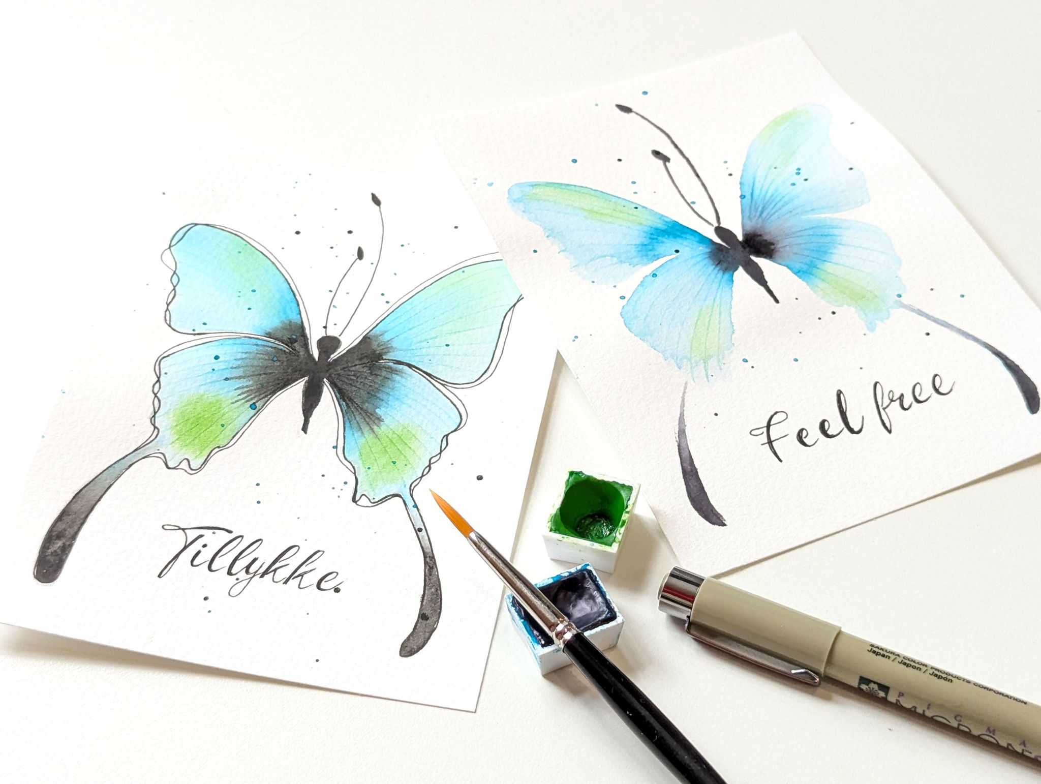 - En workshop, hvor du bliver guidet trin for trin frem til et kort i A6 med en sommerfugl.