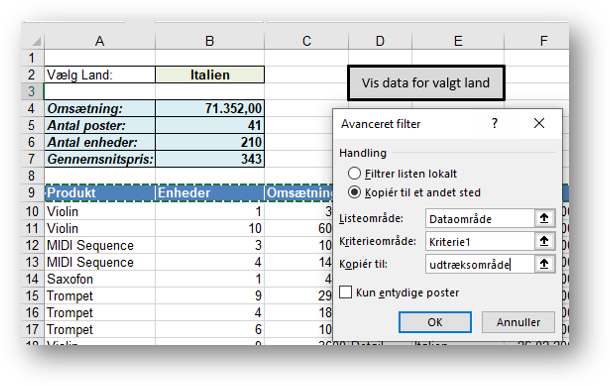 - Generel brug af funktionen Avanceret filter