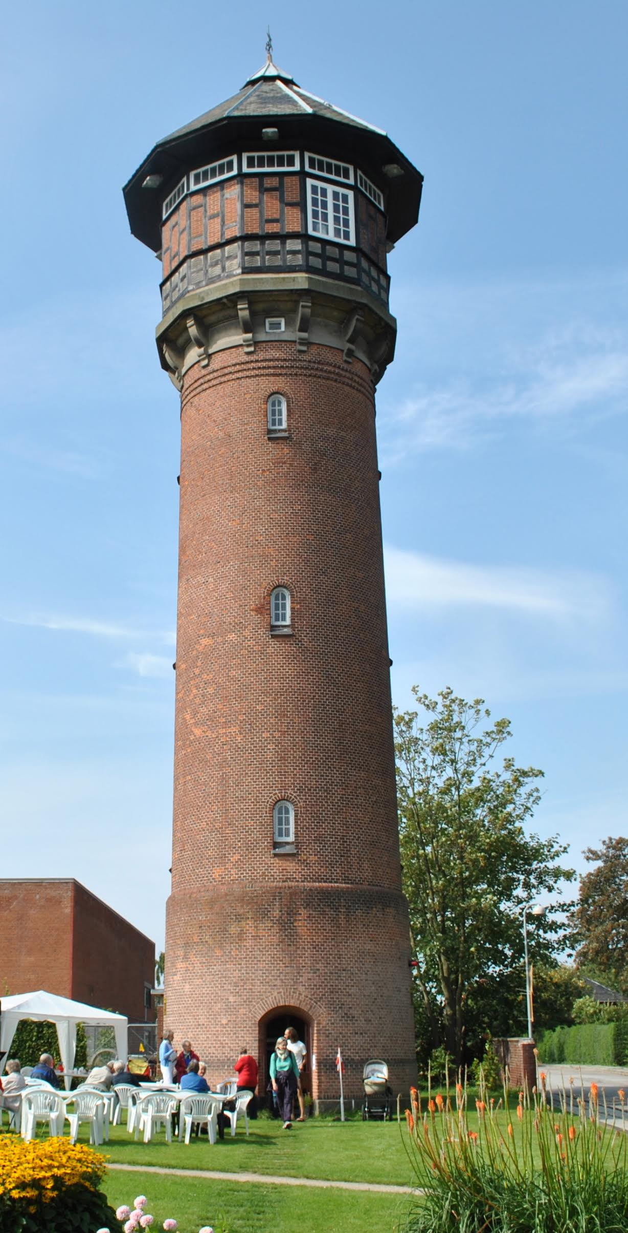 Vi starter ved Taastrup Vandtårn på Gasværksvej ved nr. 5 og tager en tur op i det fuldstændig nyrenoverede tårn, som netop er blevet færdigt.