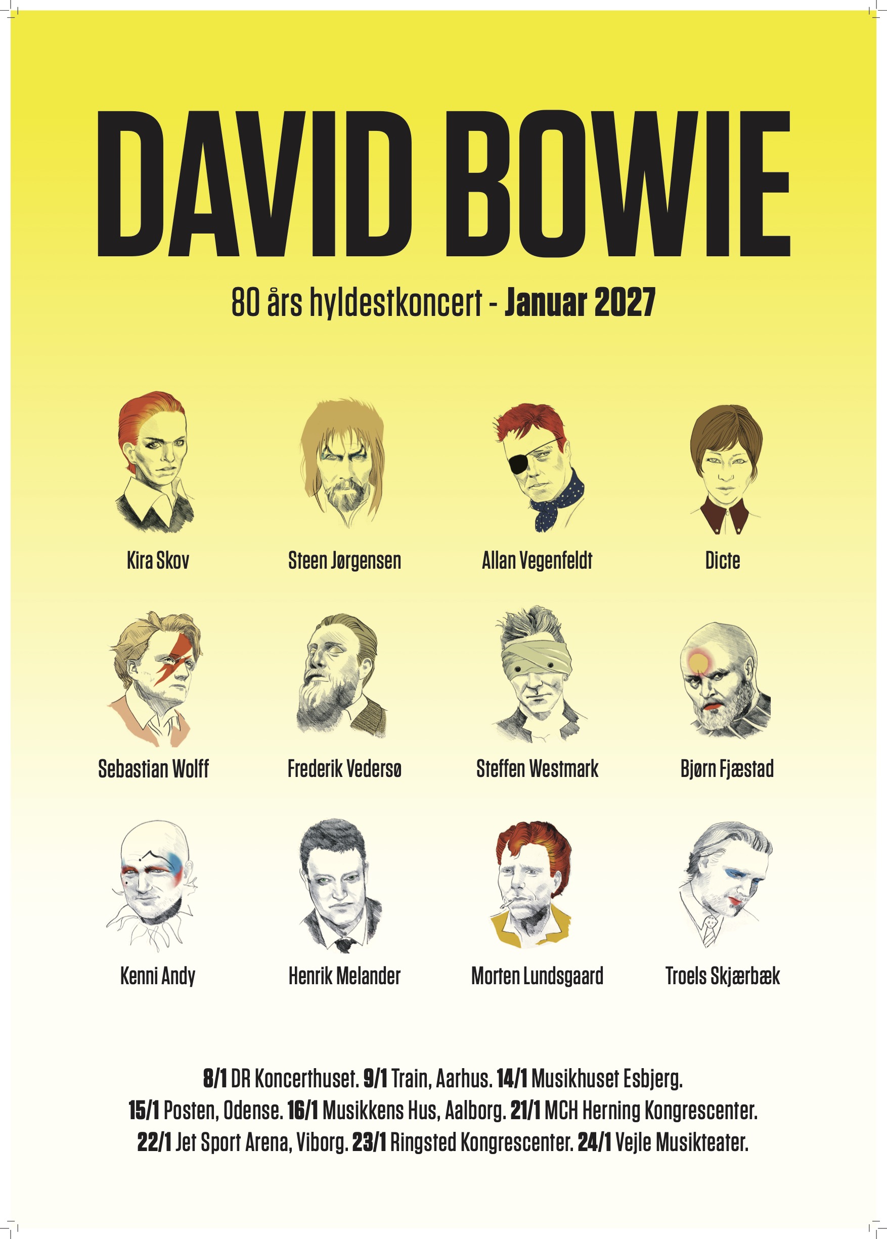 I anledning af at David Bowie ville være fyldt 80 år den 8. januar 2027, samles en række markante danske kunstnere for at hylde en af musikhistoriens mest ikoniske og grænsesøgende skikkelser.