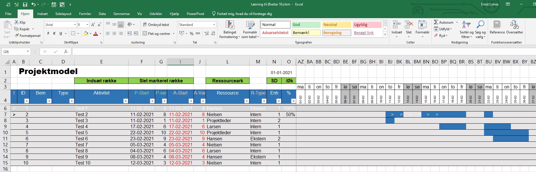 - Brug formler og betinget format til at oprette Gantt kort i Excel til simpel projektstyring