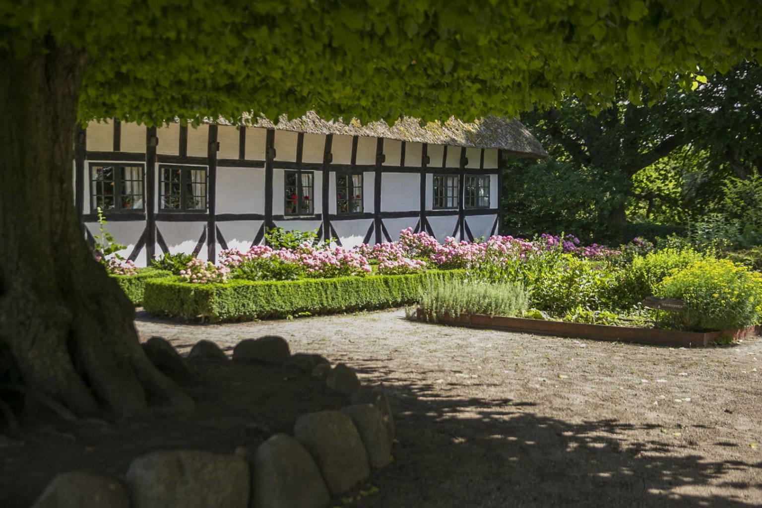 Det lille frilandsmuseum er en skøn lille oase i udkanten af Maribo, hvor du kan få et indtryk af livet på landet for 200 år siden. Vi får en rundvisning og nyder en kage og en tår kaffe sammen.