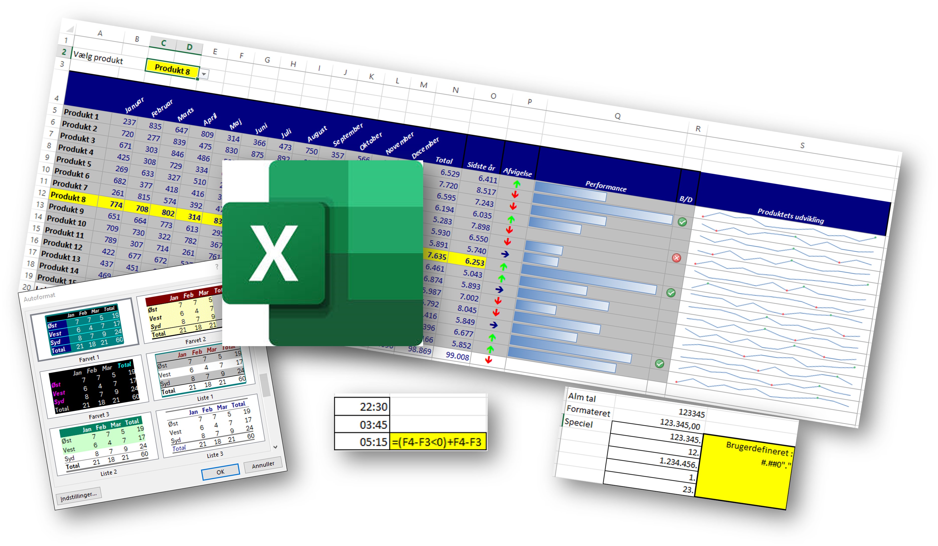 Avancerede brugerdefinerede formater - Tilknyt og benyt Autoformater i Excel