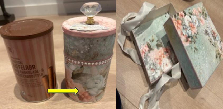 Vil du give gamle emballage ny liv med pænt blemstrendepapir? Du kan forvandle gamle konservesdåser/æsker, give dem nyt designerudseende og bruge til opbevaring af bestik, kontorartikler, eller fotos.