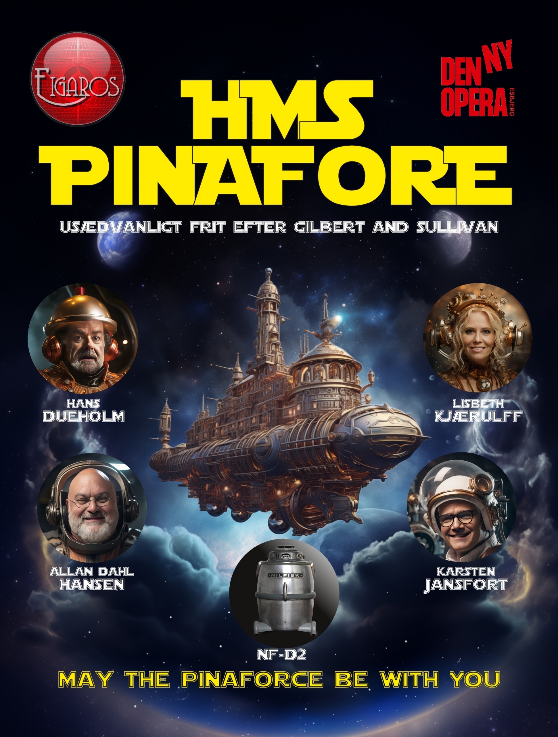 Og efter HMS Pinafore har været en tur i Figaros komiske vridemaskine, er der garanti for en både morsom og musikalsk aften i teatret. Så tag på forårsturné imod det uendelige univers med Figaros.