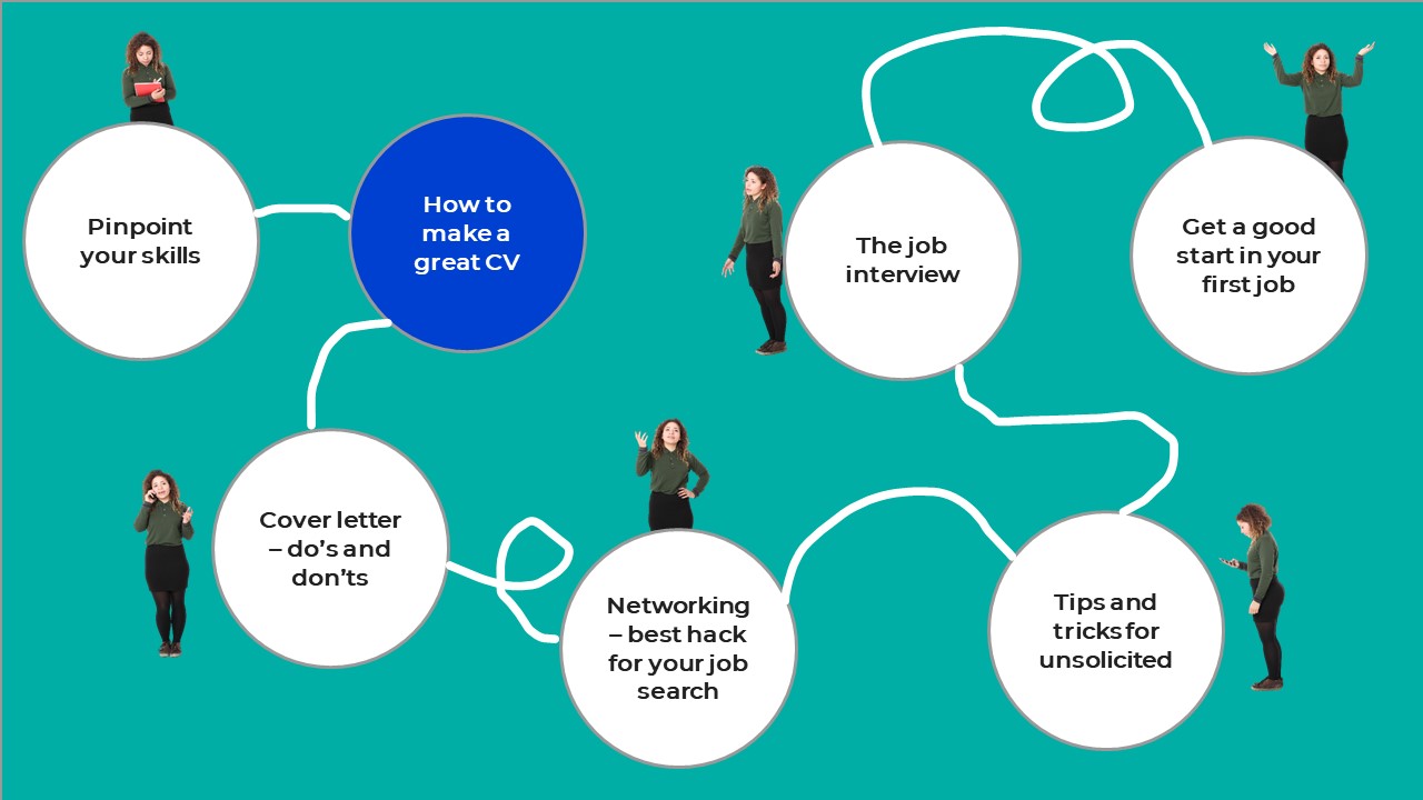 In order to get the most out of the seminar watch this tutorial about how to make a CV and adapt your CV according to the tips. Bring your CV to the workshop and be ready for feedback in breakout groups. During this seminar you’ll get concrete tips and knowledge about how to write a good CV and on what information you should be looking for.