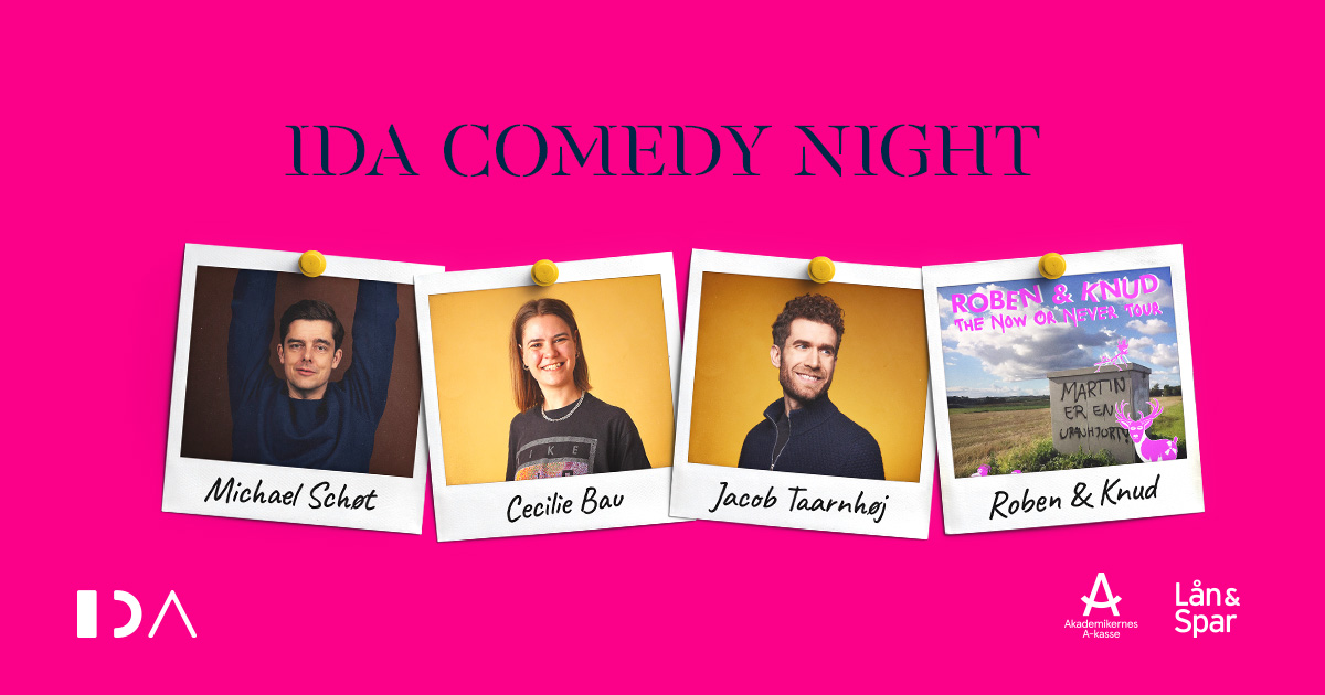 Det er snart tid til årets sjoveste aften med IDA! I år med ny lokation – intet mindre end Den Gamle Scene på Det Kongelige Teater. Vi har samlet nogle af Danmarks bedste komikere, og du er inviteret! Tag vennerne med og vær klar på grin og god stemning