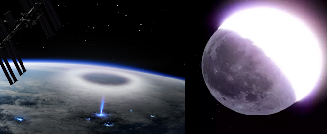 Foto: Artist impression of a blue jet observed from the International Space Station. Credit: Mount Visual/University of Bergen/DTU Space