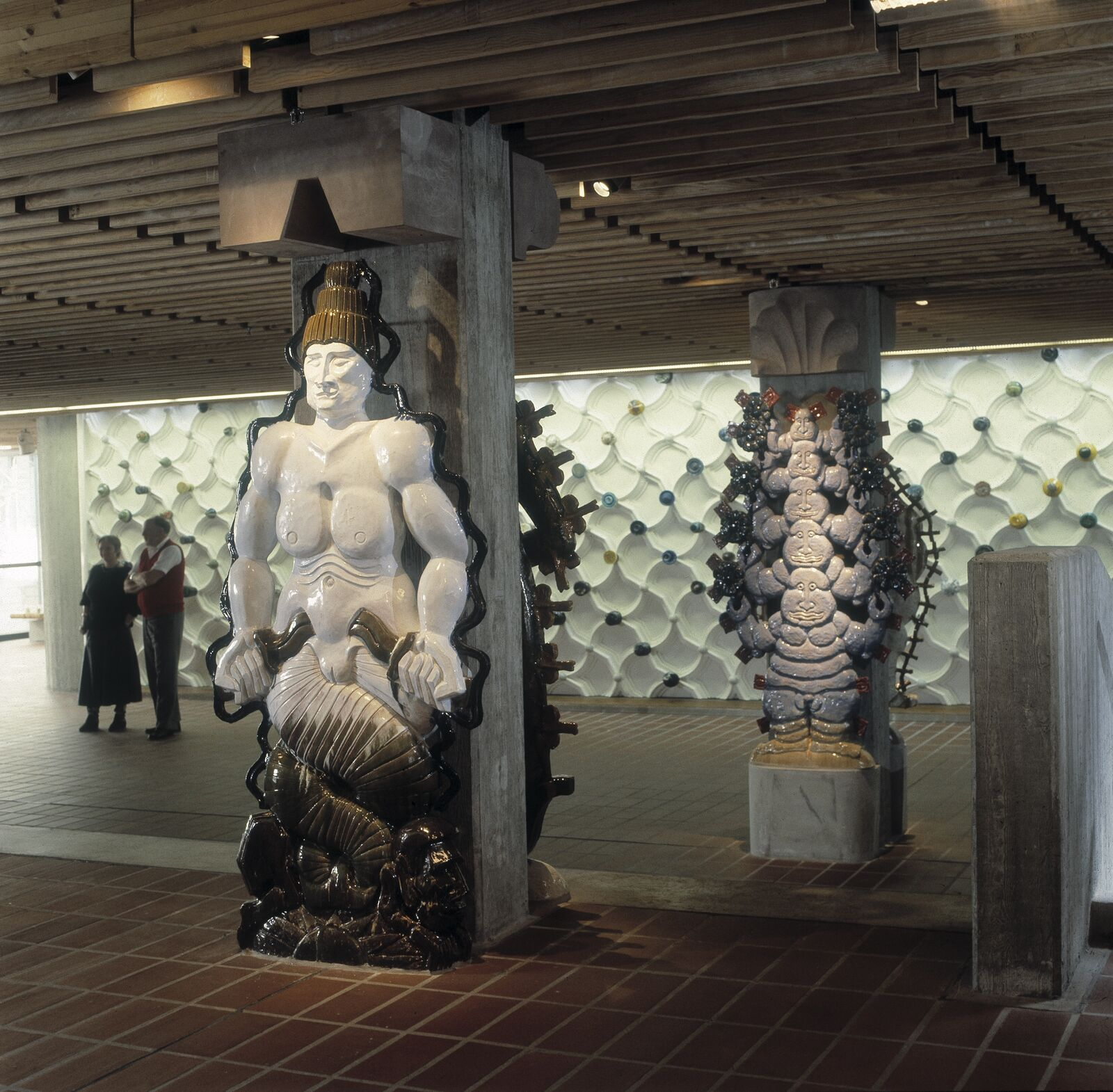 12 allegoriske figurer og 240 punkter fra 1986, kunst i fællesrummet i tilknytningen til vandrehallen.