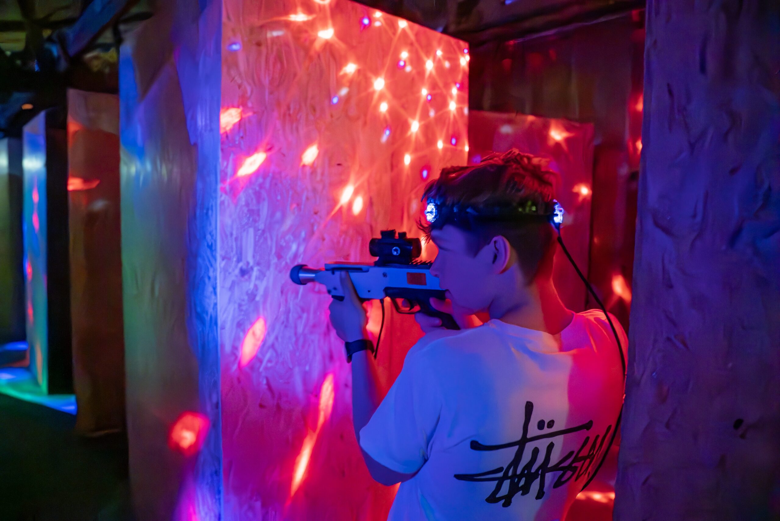Lasergame er et actionfyldt holdspil, hvor deltagerne dyster mod hinanden med laserpistoler og sensorudstyr i en stor, indendørs arena. Banerne hos Battlearena er strategisk opbygget med forhindringer og dækninger, og atmosfæren er intens med svag farvet belysning og lys-/musikeffekter, som gør oplevelsen mere spændende og sjov. Der spilles typisk i hold mod hold, hvor målet er at ramme modstanderne og bruge taktik og samarbejde for at vinde runderne