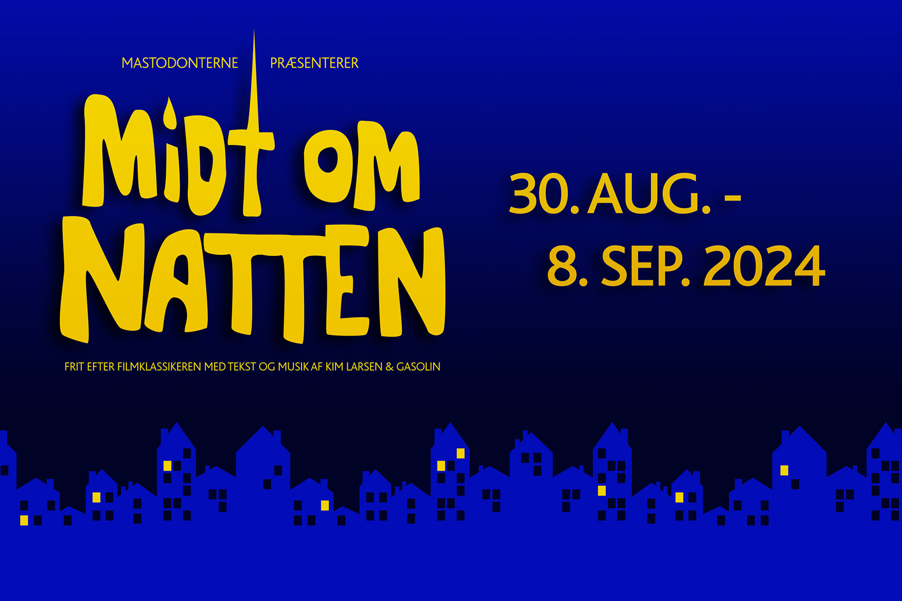 Derfor er det med største fornøjelse at Mastodonterne byder jer indenfor til musicalen “Midt om natten”, frit fortolket efter filmen og Kim Larsens massive bagkatalog.