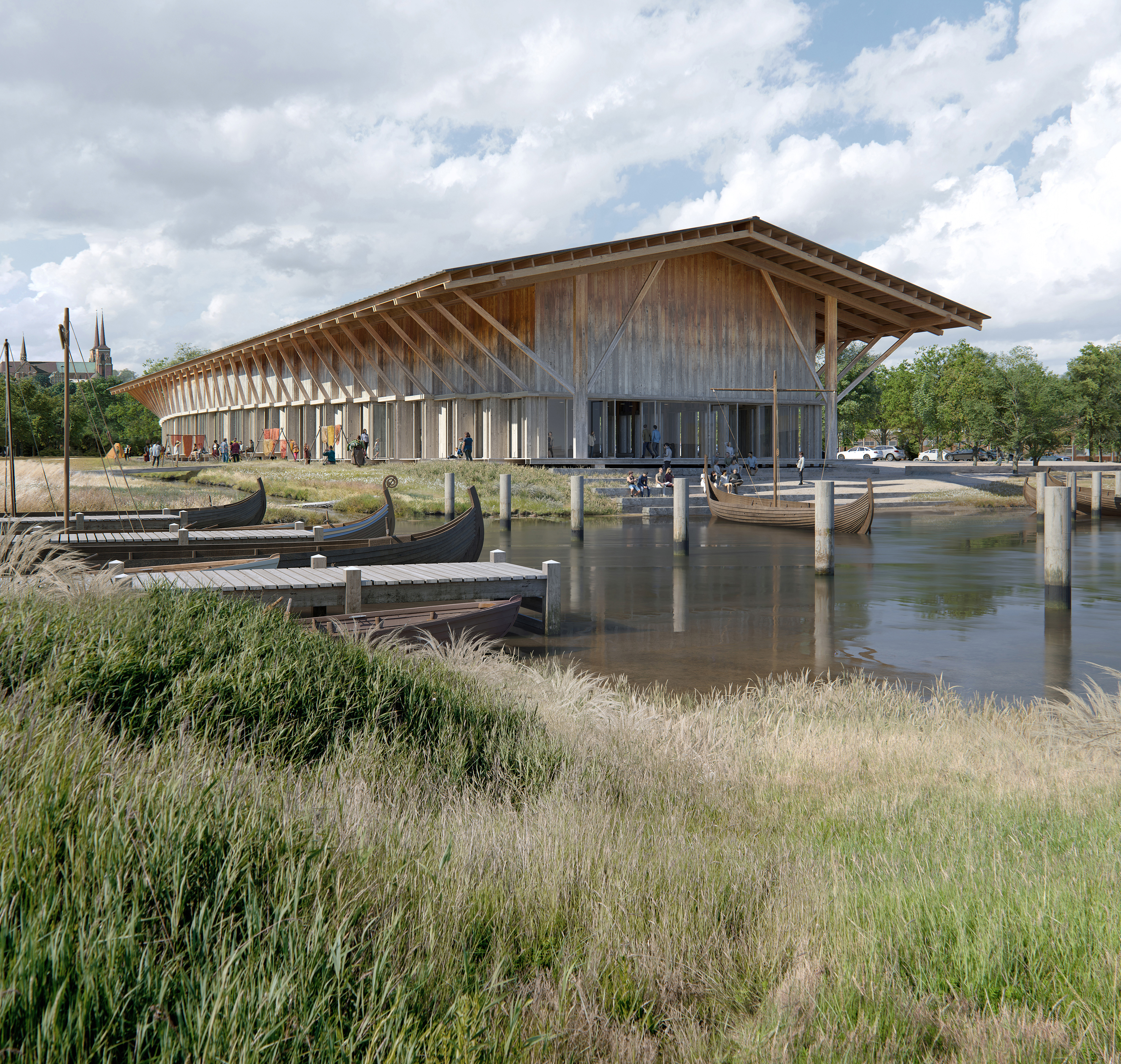 Den nye museumsbygning bliver opført i træ, der som materiale knytter an til fortiden med vikingetidens huse og skibe og skaber forbindelse til nutidens bygninger på Museumsøen og livet på havnen. Samtidig har bygningen synlige bærende trækonstruktioner i en rytmisk takt, der taler sammen med den nuværende Vikingeskibshal, som bliver transformeret, sikret mod stormflod og åbnet mere op for offentligheden.