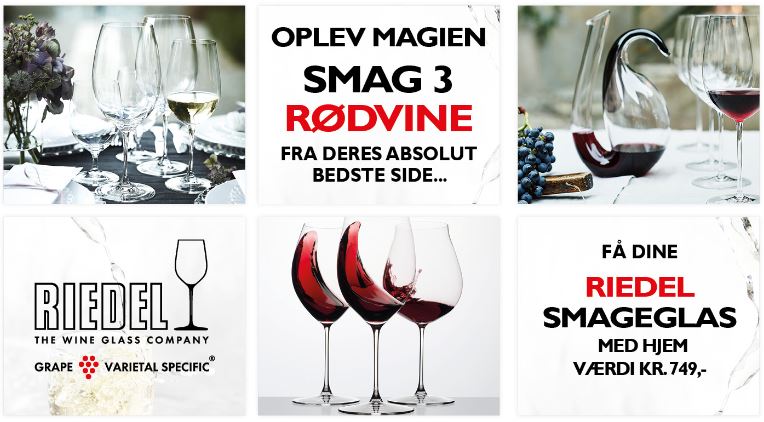 Glas er en videnskab, og ikke uden grund har østrigske Riedel forsket i påvirkning af duftsansen og smagsløgene i forhold til glassenes udformning. Det rigtige glas til den rigtige vin kan faktisk betyde, at en vin dufter og smager af 50% mere. Det lyder som gas, men er i realiteten næsten trylleri. Kom og oplev magien, hvor vi skal smage 3 rødvine fra deres absolut bedste side, det bliver sandsynligvis en Pinot Noir, Syrah og Cabernet vi skal afprøve med. Vinene og glassene vil blive kommenteret af Riedel ambassadør i Danmark Carsten Rasmussen.