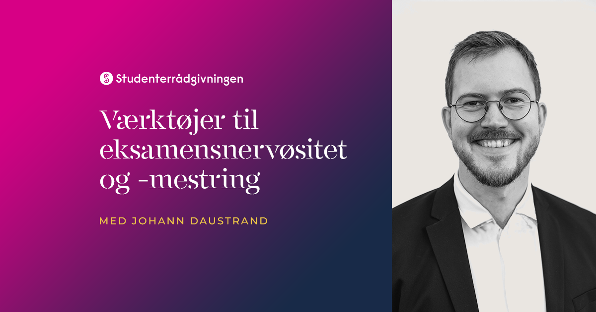 Vi er glade for at have Johann Daustrand fra Studenterrådgivningen som oplægsholder, som har arbejdet de sidste par år med både individuelle terapeutiske samtaler, workshopfacilitering samt organisatorisk rådgivning. Studenterrådgivningen har i mere end 50 år hjulpet og rådgivet studerende på videregående uddannelser.