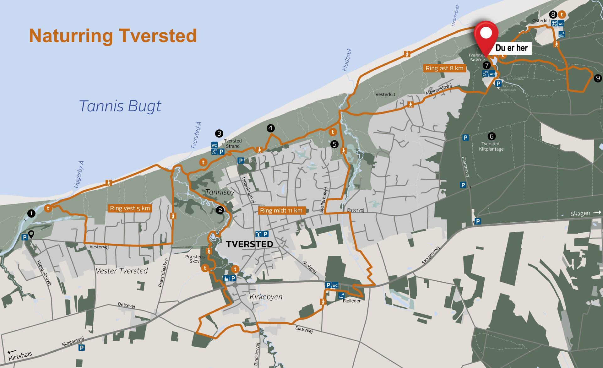 - Start/slut: Tversted Søerne (parkeringspladsen)