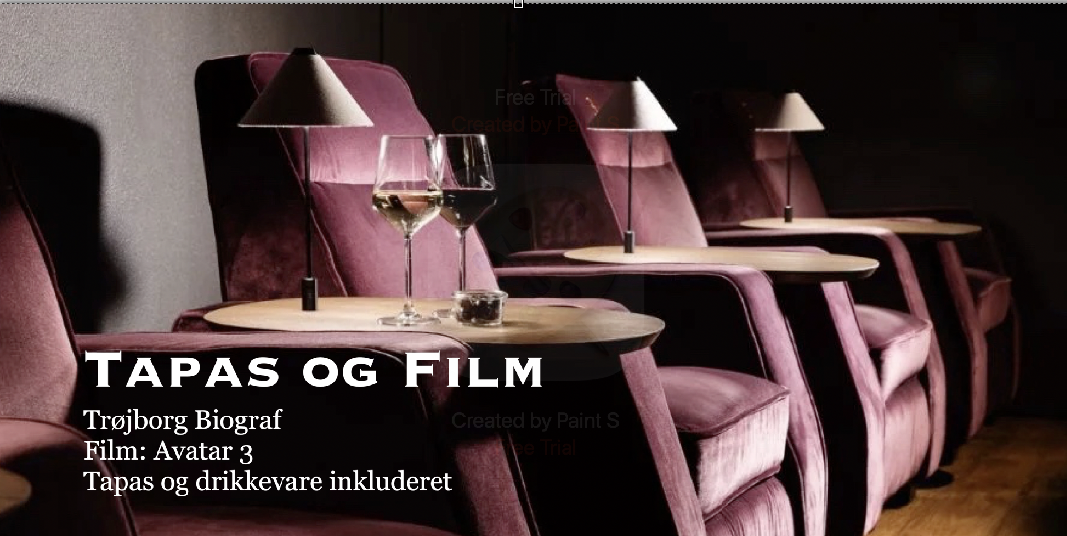 17:50 Ankomst til biografen, check af billeter samt valg af drikkevarer I entréen.