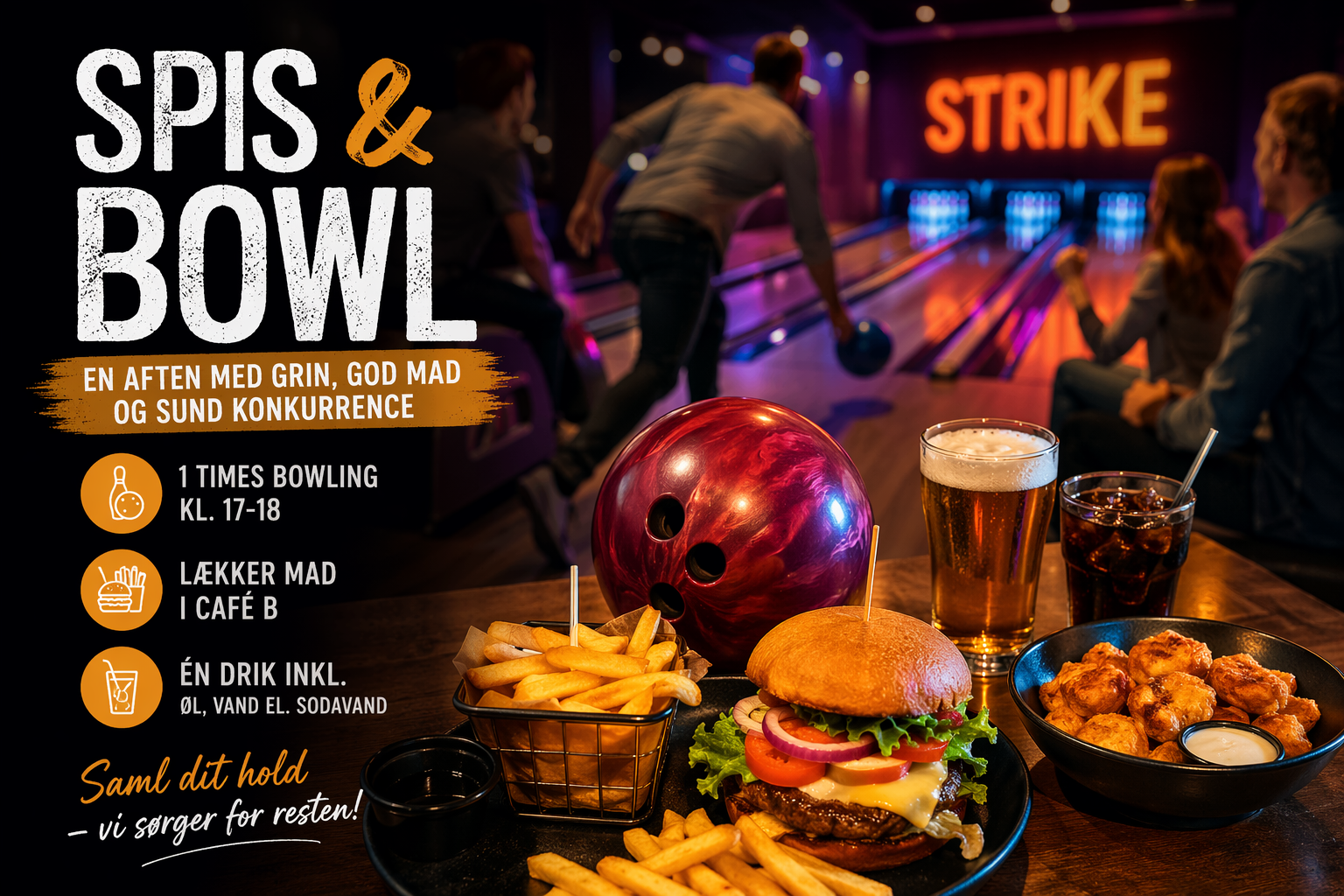 Glæd dig til en aften fyldt med konkurrence, grin og god mad 🎳
