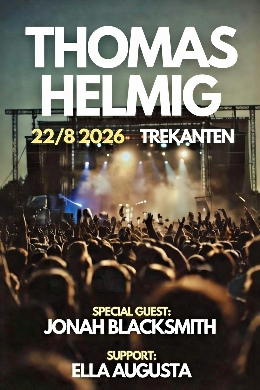 Thomas Helmig - en af landets største musiklegender besøger Aalborg, når han giver sit største headliner-show i 2026 på Trekanten – med special guest Jonah Blacksmith og support fra Ella Augusta.